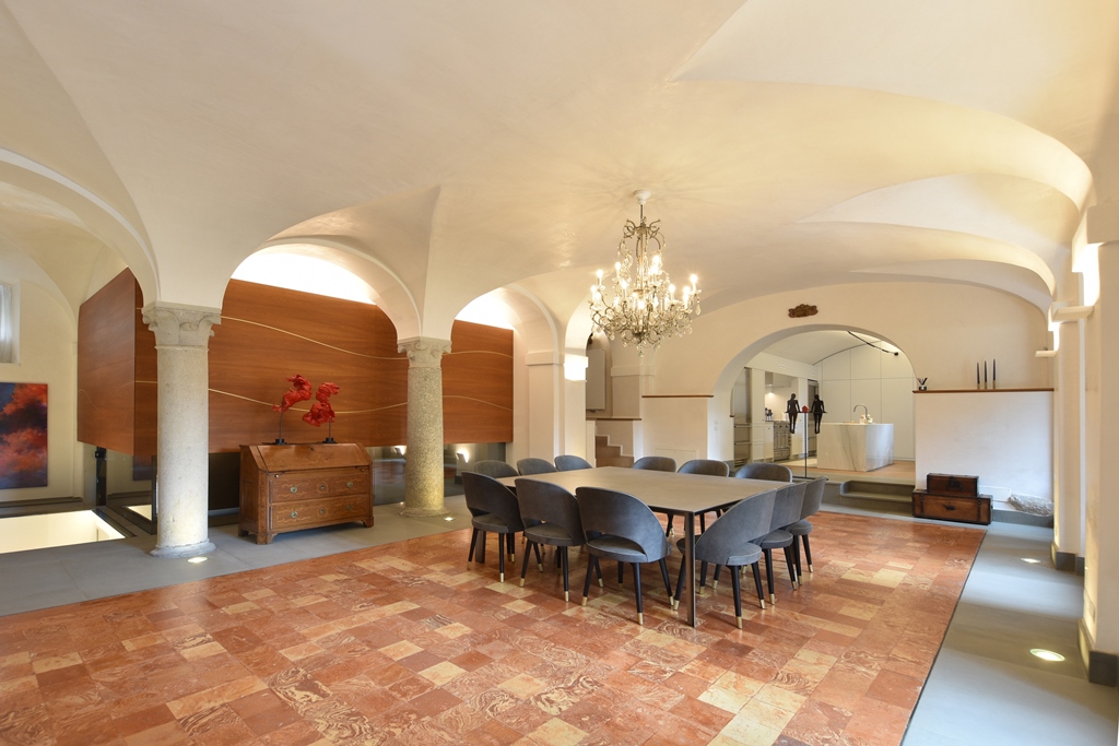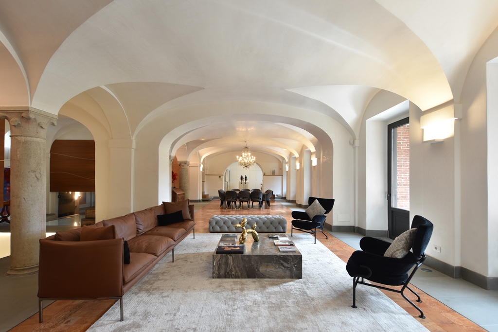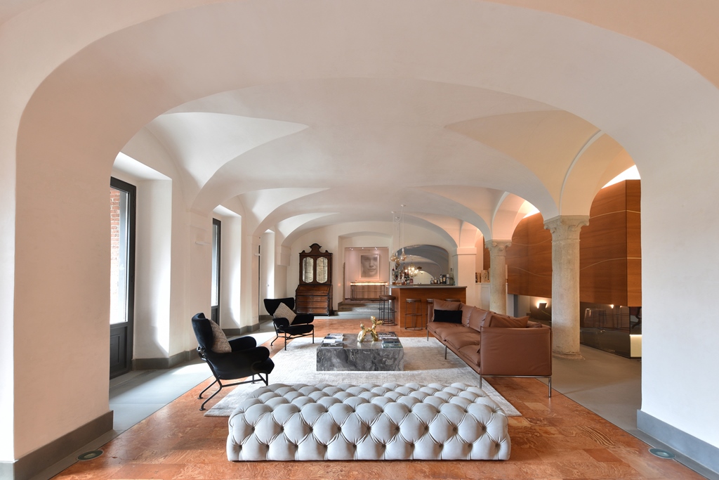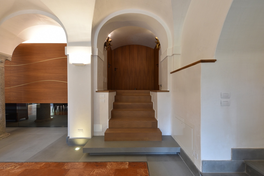 L’intervento di riqualificazione si inserisce in un contesto di alto pregio storico, dove l’obiettivo primario è stato la sintesi formale tra il valore della memoria e le istanze dell’abitare contemporaneo.Il progetto instaura un dialogo virtuoso tra le stratificazioni del passato e un nuovi linguaggi materici.Così le ampie spazialità delle volte sono state oggetto di un attento recupero materico e cromatico, ed un attento inserimento dei corpi illuminanti, le pavimentazioni storiche sono state integrate e rigenerate mantenendo la loro funzione di memoria tattile dello spazio, gli arredi sono un risultato di equilibrio tra linearità ed eleganza.